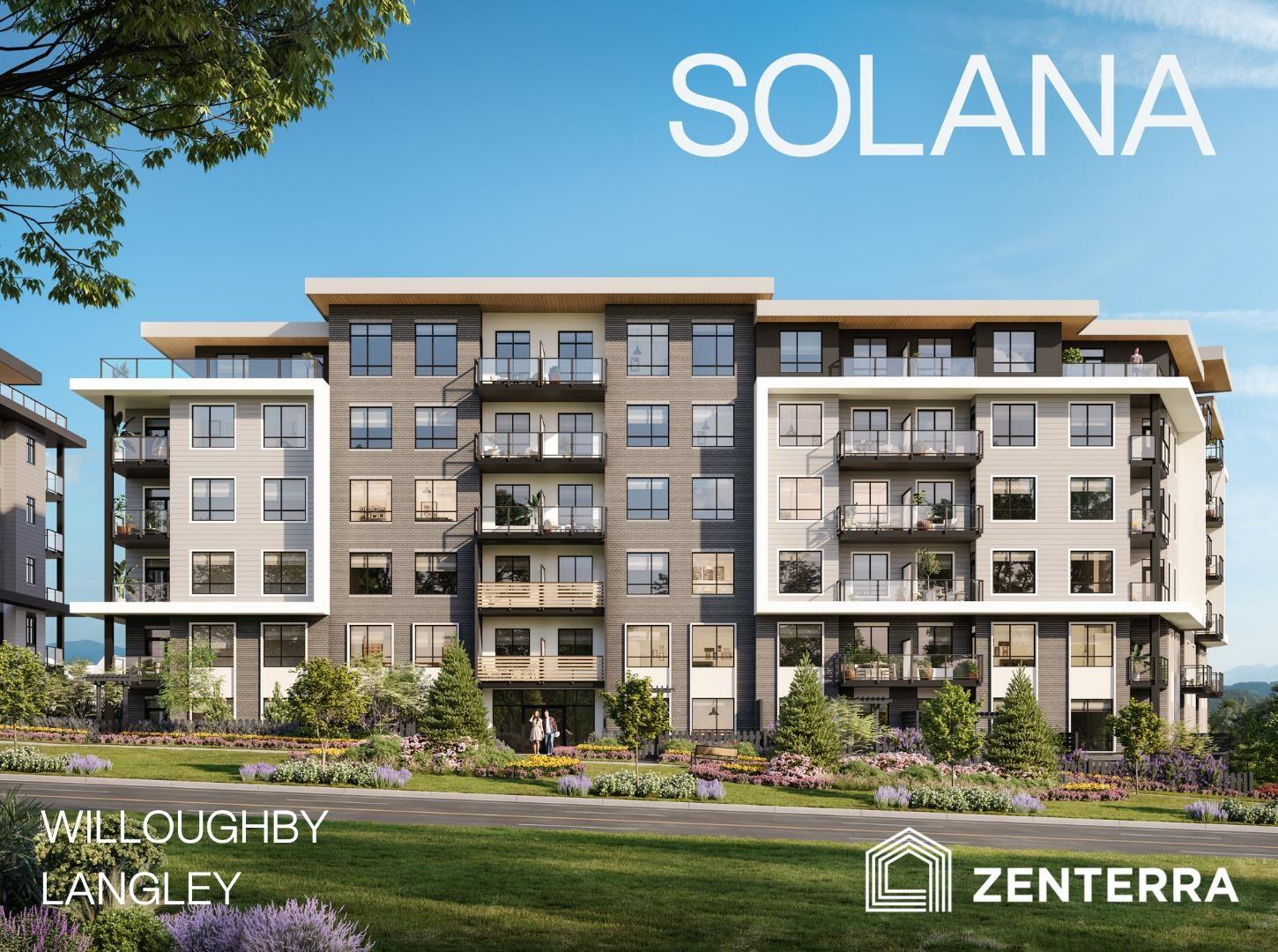 Introducing Solana by award-winning Zenterra Developments at 76th Ave and 200th St, Willoughby. Located across from Langley Events Centre, RE Mountain Secondary School, walking distance to shops and 3 mins to Highway 1. This BRAND-NEW condo offers 1 bed / 1 bath with 9' ceilings, A/C, built-in closet organizers, washer/dryer, storage locker & 1 parking stall w/ EV rough-in. Kitchen offers full-size stainless steel appliances w/ a 5-burner gas range, dishwasher, seamless full slab backsplash, kitchen island + gas BBQ hookup on balcony. Purchase with only 5% deposit. Completion estimated for early 2027. Enjoy 90,000 sqft of outdoor amenities including pickleball court, bocce court, putting green + sunlounge. Tour the showhome at 190 Willoughby Town Centre Drive - open daily 12-5 (closed Fri) (id:62865)
